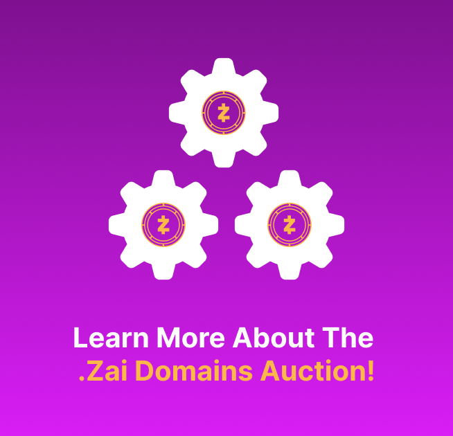 "Learn More About the .Zai Domains Auction" invites users to explore detailed information about the ongoing auction of .Zai domains. It covers how the auction works, eligibility requirements, bidding procedures, and the potential value of owning a .Zai domain. This initiative aims to educate participants on the benefits, use cases, and long-term opportunities tied to digital identity and web3 presence within the Zai ecosystem.